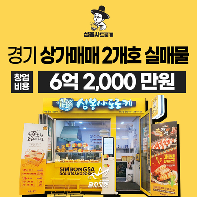 ★급매 통매 6억 2,000만원 오픈일자 : 2020년 오픈 (5년 이상 운영 매장) 초기비용 : 4,000만원 이상 교육비 : 본사협의  / 가맹비 : 본사협의  / 로열티 여부 : 본사협의 매물정보 <수원 원천동 부동산 + 고로케 인기 프랜차이즈, 매출 수익 좋은 대단지 상가 매물>   상호 : 심봉사도로케 광교중흥점 주소 : 경기 수원시 영통구 광교호수공원로 277, 판매시설동 B2 155호 (농민마트후문앞) 보증금 : 2,000만원 / 임대료 : 100만원 (부가세별도) 면적 : 15평(부동산+고로케 매장) 매매가 : 6억 2,000만원 협의가능) 고로케 매장 매출 : 월 평균 1,500 ~ 2,000만원 이상 (현금 매출 별도) 고로케 매장 순수익 : 월 평균 35% 이상   매물 상세보기     매물 상세보기